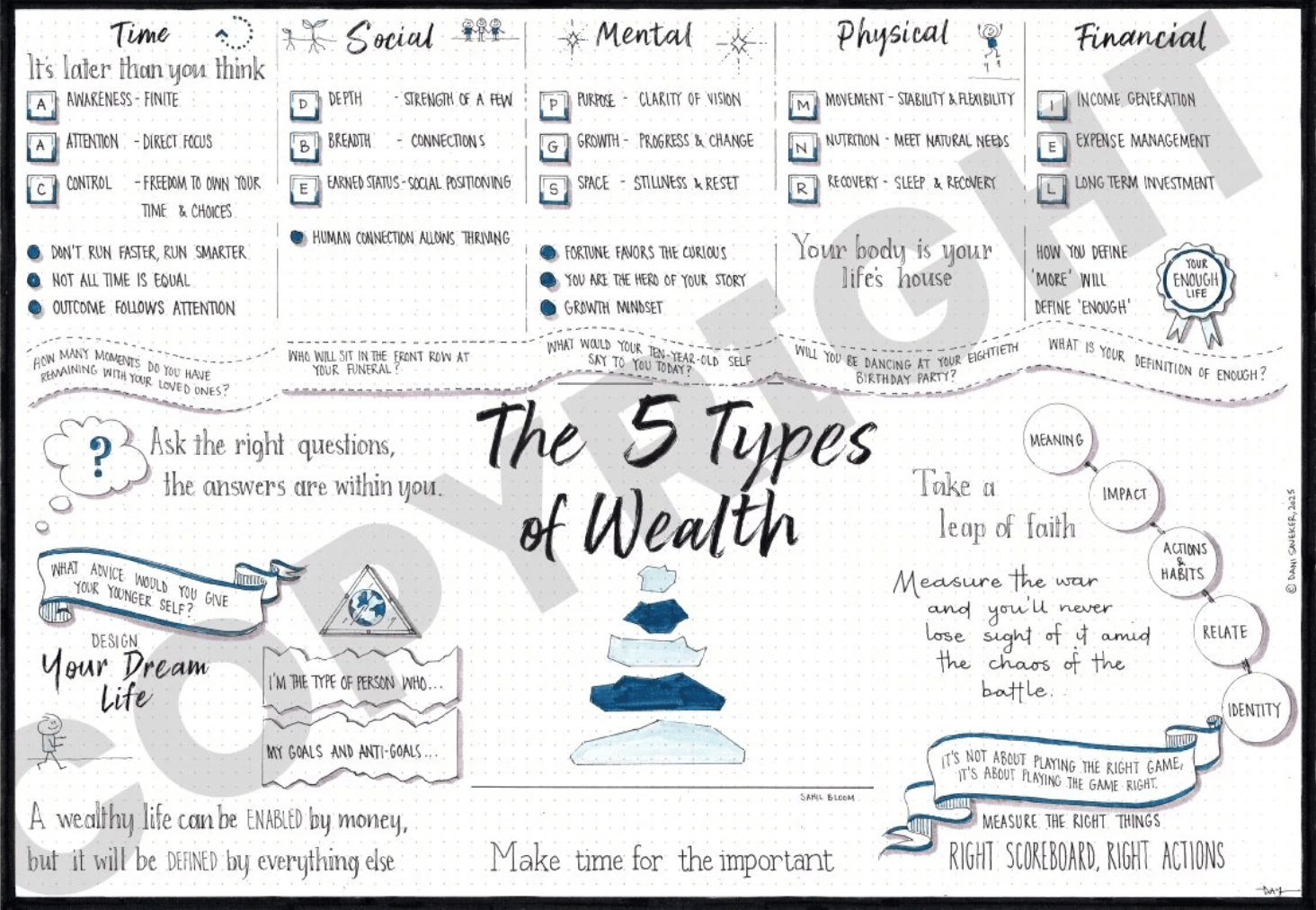 To begin, I HIGHLY recommend you read Sahil Bloom’s excellent book: The 5 Types of Wealth: A Transformative Guide to Design Your Dream Life (affiliate link)